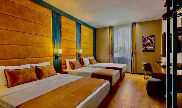 This Istanbul hotel is in the centre of the city, 3.7 km from the ancient Sultanahmet District, and in the vicinity of Taksim tube station. The hotel also lies a mere 10 minutes on foot from the cobblestone Istiklal Street and approximately a 15-minute ride from the Ottoman imperial Suleymaniye Mosque. The byzantine basilica Hagia Sophia Museum is also situated 3.5 km away. Sirkeci station is 3.5 km from the Taksim Palece Otel Istanbul.